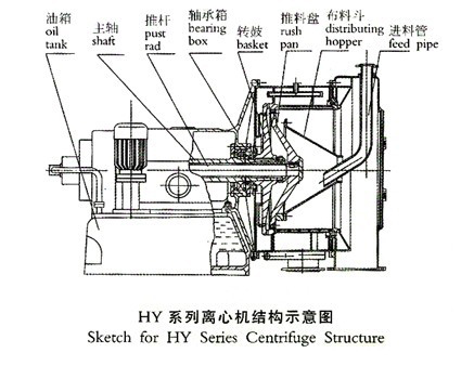 主電機(jī)帶動(dòng)轉(zhuǎn)鼓全速旋轉(zhuǎn),物料由進(jìn)料管連續(xù)引入,均勻分布到轉(zhuǎn)鼓內(nèi)段濾網(wǎng)壁上,在離心力作用下,液相物穿過(guò)濾網(wǎng)和轉(zhuǎn)鼓壁濾孔排出轉(zhuǎn)鼓,經(jīng)機(jī)殼排液管排出機(jī)外,固相物截留在轉(zhuǎn)鼓內(nèi),形成環(huán)形濾餅層。推料盤與轉(zhuǎn)鼓同速旋轉(zhuǎn)的同時(shí),在活塞推動(dòng)下,連續(xù)軸向往復(fù)運(yùn)動(dòng),推動(dòng)濾餅層間歇不斷地向轉(zhuǎn)鼓外端移動(dòng)排出轉(zhuǎn)鼓,從前機(jī)殼底部排出機(jī)外。